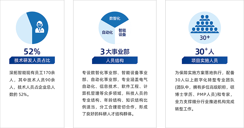 深拓智能服務制造業多年,深諳行業痛點與訴求,成立三大事業部強力支撐企業數字化轉型。有效結合自動化技術、智能設備和企業全價值鏈數字化管理系統,幫助企業優化流程,提高效率、降低成本,提升質量。數十載行業深耕,我們比制造業更懂軟件開發,比軟件企業更懂制造業,軟硬結合,造就深拓智能的核心競爭力。