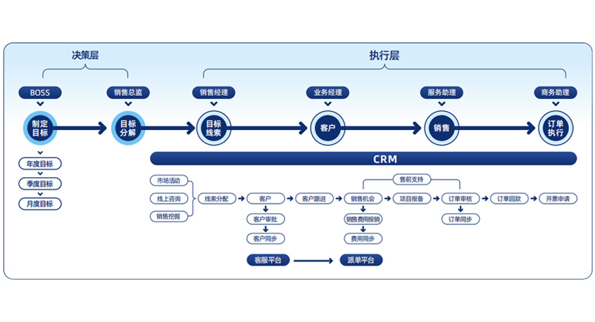 營銷管理CRM(Customer Relationship Management)是一種通過信息技術整合客戶數據、優化業務流程的工具,覆蓋企業從獲客、跟進、成交到售后服務的全生命周期。它通過集中管理客戶信息(如聯系方式、交易記錄、互動歷史等),打通銷售、營銷、客服等部門的數據壁壘,實現客戶資源的高效利用和個性化服務,最終目標是提升客戶滿意度、增加收入并降低運營成本。