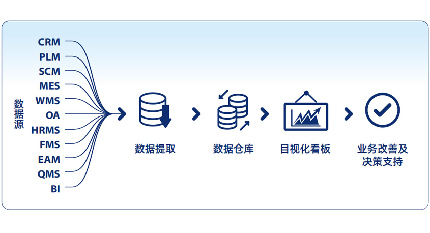 商業智能BI(Business Intelligence)是一套由數據倉庫、數據分析、可視化工具等組成的技術解決方案,旨在通過整合企業內外部數據,提供數據驅動的決策支持。其核心在于將分散的業務數據(如ERP、CRM、OA等系統數據)統一整合,通過清洗、建模和可視化分析,轉化為可理解的業務洞察。例如,某企業通過BI系統將銷售、庫存、財務數據整合,實現實時業務監控,決策效率提升50%。